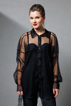 Базовая блузка из хлопковой ткани. Это имена та блузка которую можно носить несколько сезонов и она не потеряет свою актуальность. Универсальность – главное преимущество этой блузки. Блузка силуэта оверсайз, что идеально подходит для разного типа фигуры. Спинка блузки удлиненная. Блузка с фигурным низом и разрезами по боковым швам. Застежка сквозная на потайные петли и пуговицы. Воротник рубашечного типа. Рукава широкие рубашечные, с высокими манжетами. По переду на левой детали имеется нагрудный накладной карман. Спинка с горизонтальной кокеткой. От кокетки расположена глубокая бантовая складка. Вся внутренняя обработка изделия швами с закрытыми срезами. Отличный модный вариант блузки как в офис, так и для повседневных дней в сочетании с любимыми джинсами. Длина изделия – 75 см.