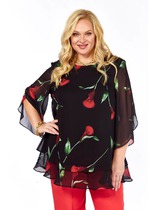 Блуза Элль стиль 2213/11а черный, принт цветы