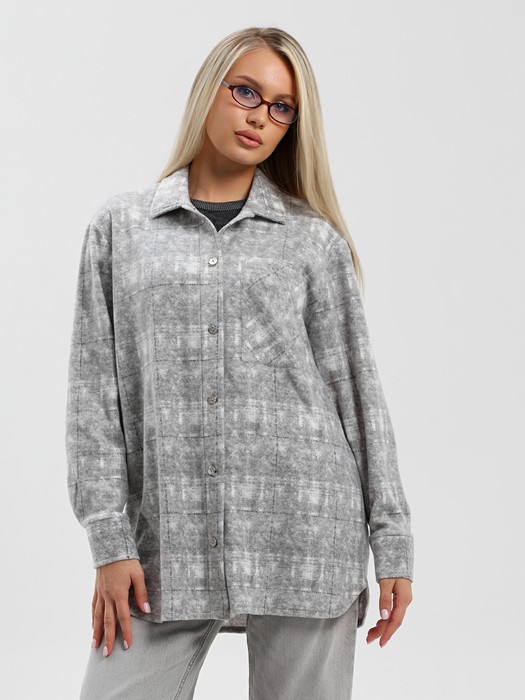 Рубашка (туника) молодежная из трикотажного полотна «флис» с эффектом «варенки», полуприлегающего силуэта, с длинными втачными рукавами на притачных манжетах, стояче-отложным воротником, нагрудным карманом, фигурным низом и центральной бортовой застежкой на петли и пуговицы. Спинка – с отрезной кокеткой и бантовой складкой в центре соединительного шва.