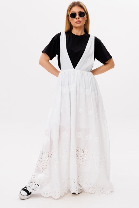 Сарафан А-силуэта, с фигурными бретелями. Застежка на боковую молнию. Сарафан на подкладке.