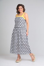 Джинсовый сарафан с вышивкой и кружевом. Резинка на талии, открытые плечи, короткие рукава, общая длина чуть ниже середины бедра. Несколько вариантов расцветки — черный джинс, бежевое кружево, розовое кружево, белое кружево. Размеры от 42 до 52. Есть розница.
