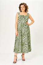 Сарафан молодежный из тканого штапельного полотна с набивным рисунком, слегка расширенный книзу, на узких бретелях, вытачанных из окантовки, двумя вытачками в области груди и оборкой по низу. Вырез горловины по переду и спинке и проймы окантованы основным материалом.