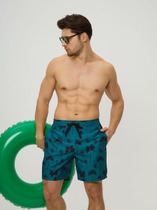 Мужские шорты с боковыми караманми из мягкого полотна без эластана. Контрасные вставки двух цветов на правой части шорт. Внутренние плавки из мягкой эластичной сетки. По линии талии широкая резинка и регулируемый шнурок. Подгиб по ни жнему краю шорт.