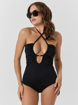Раздельный купальник из эластичного фактурного полотна с золотой нитью с мягкой чашкой soft bra. Мягкая чашка со съемными формованными вкладышами. Застежка купальника - декоративные завязки из ткани спереди.Бюстгалтер без каркасов и без боковых корсетных вставок.Бретели регулируемые, не съемные. Плавки на подкладе, со средней посадкой. Тонкая резинка,подгиб и плоский шов по талии и срезу ножек.