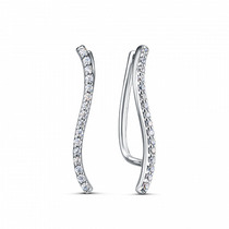 Серьга-каффа из серебра с фианитами родированная 28019р