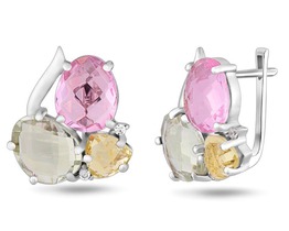 Серьги, зеленый аметист , лимонный топаз , морганит, Богема