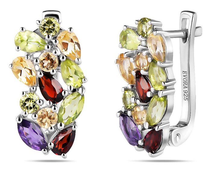 Серьги, арт.658602 Серебро Серебро 925, 5,72 гр., аметист , гранат , перидот , цитрин