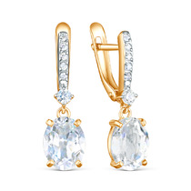 Серьги из золочёного серебра с натуральным горным хрусталём, фианитами и родиров