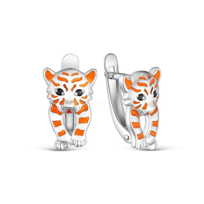 Серьги детские из серебра с эмалью и фианитами родированные