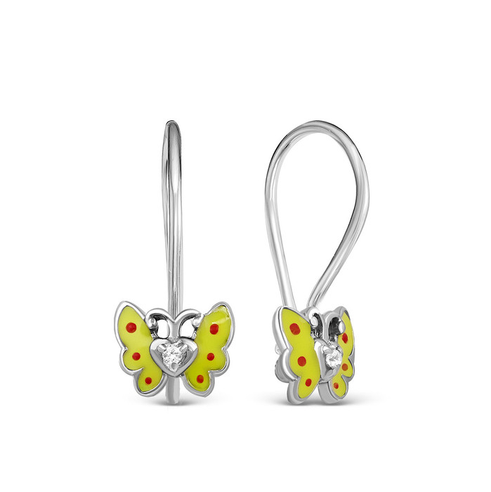 Совместные покупки Сургут Ювелирные украшения и бижутерия Серьги — Серьги детские из серебра с эмалью родированные - Бабочки 925 пробы 2113025