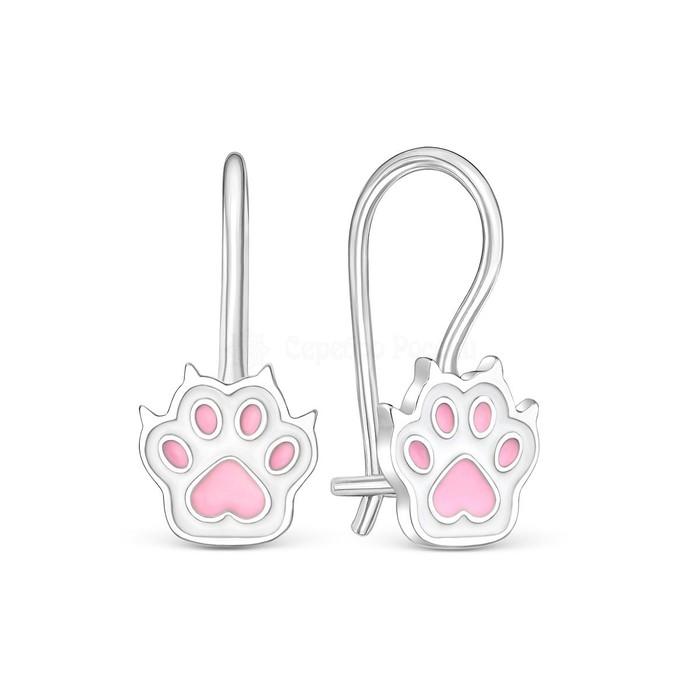 Совместные покупки Сургут Детские аксессуары Украшения, бижутерия — Серьги детские из серебра с эмалью родированные - Лапки 925 пробы 5066эр1