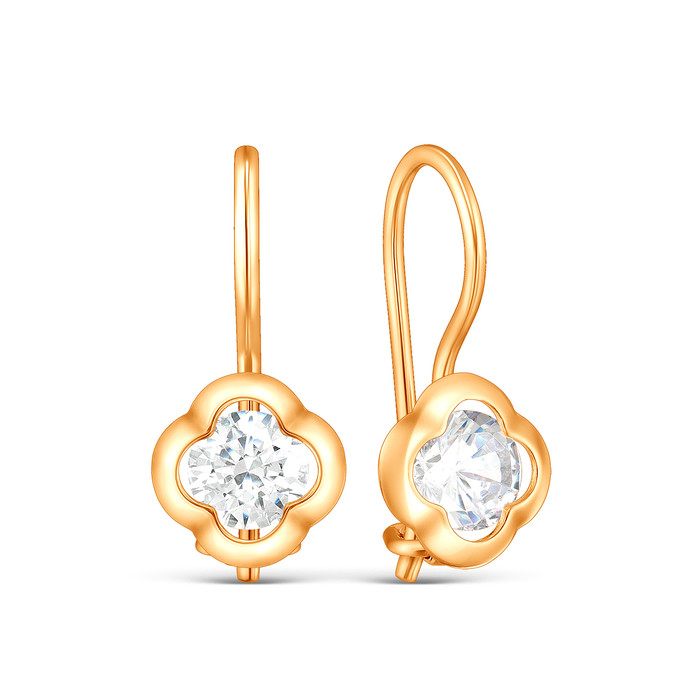 Серьги детские из золочёного серебра с фианитами - Клевер 925 пробы S2180341010з