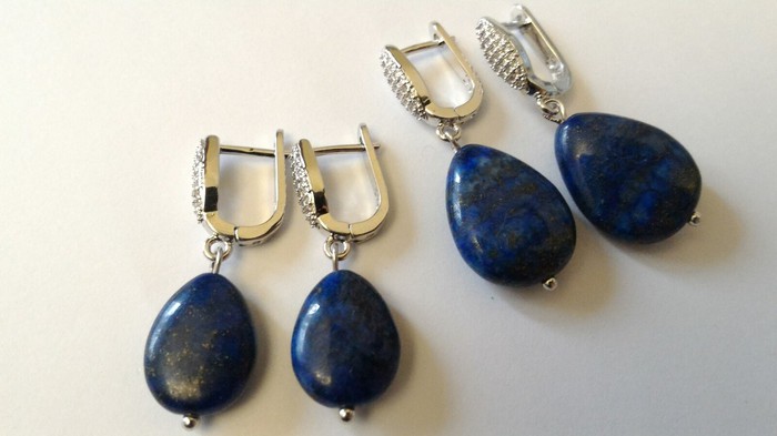 Серьги из натурального лазурита, камень 19*15 мм, 12*15 мм, Фурнитура премиум класса с гипоаллергенным