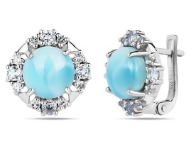Серьги из золочёного серебра с натуральным сапфиром и фианитами 925 пробы С-215з