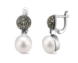 Серьги, жемчуг , марказит, SL-AGA794