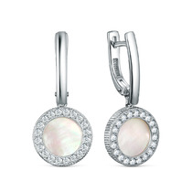 Серьги из серебра с перламутром и фианитами родированные 925 пробы 221-10-001р
