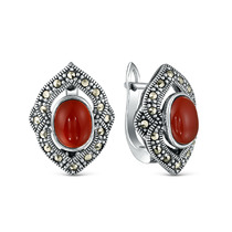 Серьги из чернёного серебра с агатом и марказитами 925 пробы HR0335-RD-LK