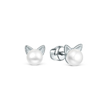 Серьги-пусеты из серебра с культивированным жемчугом родированные - Кошки 925 пр