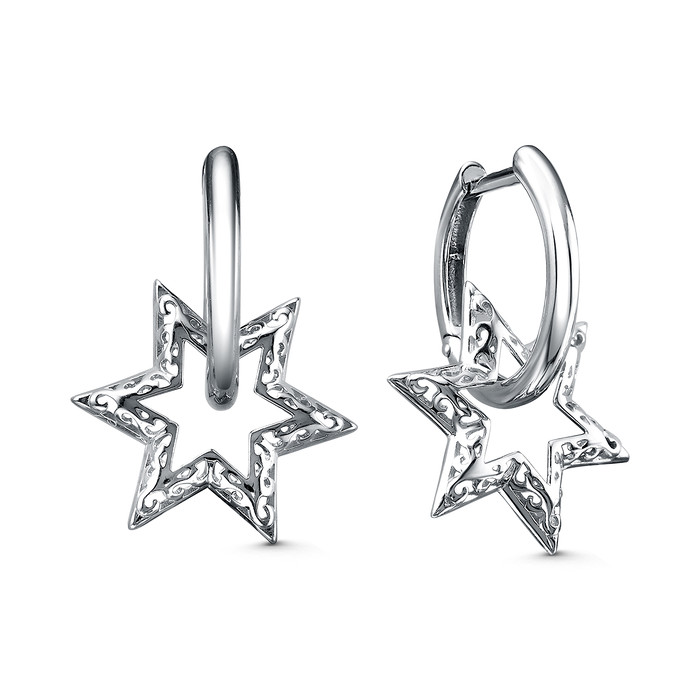 Совместные покупки Сургут Ювелирные украшения и бижутерия Серьги — Серьги из серебра родированные - Звёзды (трансформеры, 2 в 1) 925 пробы С-4804-Р