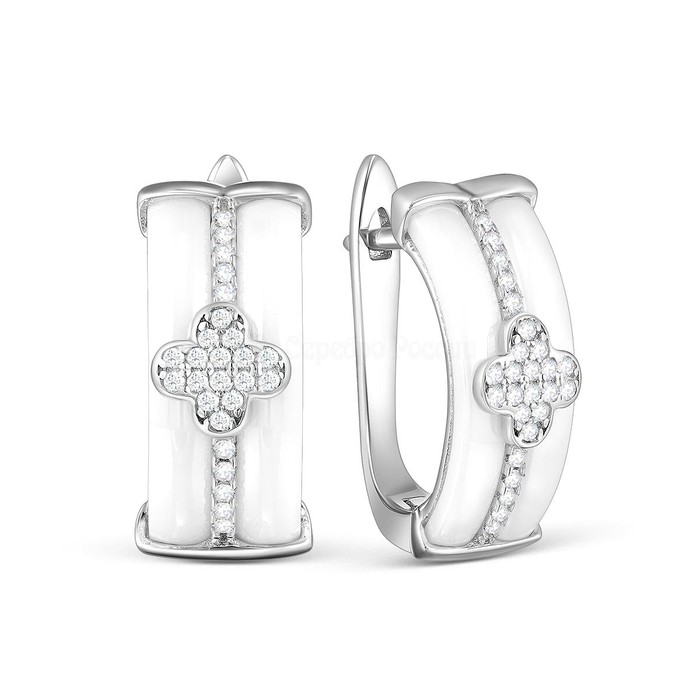Совместные покупки Сургут Ювелирные украшения и бижутерия Серьги — Серьги из серебра с белой керамикой и фианитами родированные TC-E00134-W-W-X-X-W