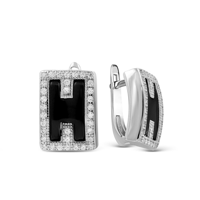 Серьги из серебра с чёрной керамикой и куб. цирконием родированные 925 пробы CTX