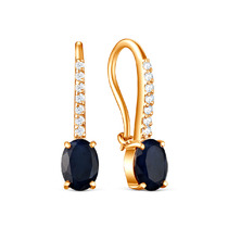 Серьги из золочёного серебра с натуральным сапфиром и фианитами 925 пробы С-215з