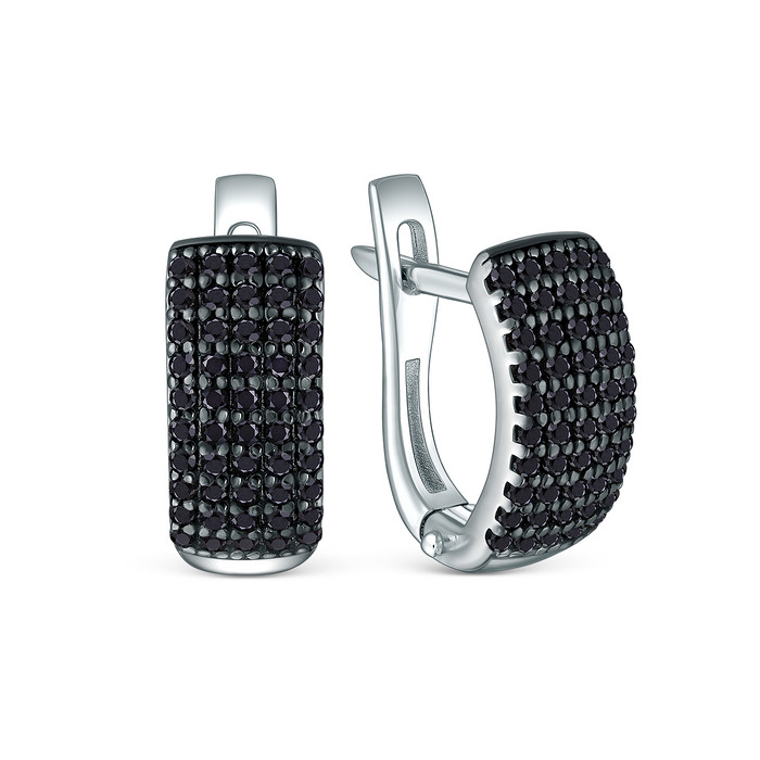 Серьги из серебра с чёрными фианитами родированные 925 пробы с-7210р216