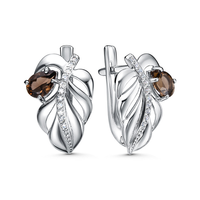 Совместные покупки Сургут Ювелирные украшения и бижутерия Серьги — Серьги из серебра с дымчатым кварцем и фианитами родированные 2-4148-001