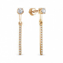 Серьги из золочёного серебра с натуральным чёрным опалом и фианитами С-3834зк117