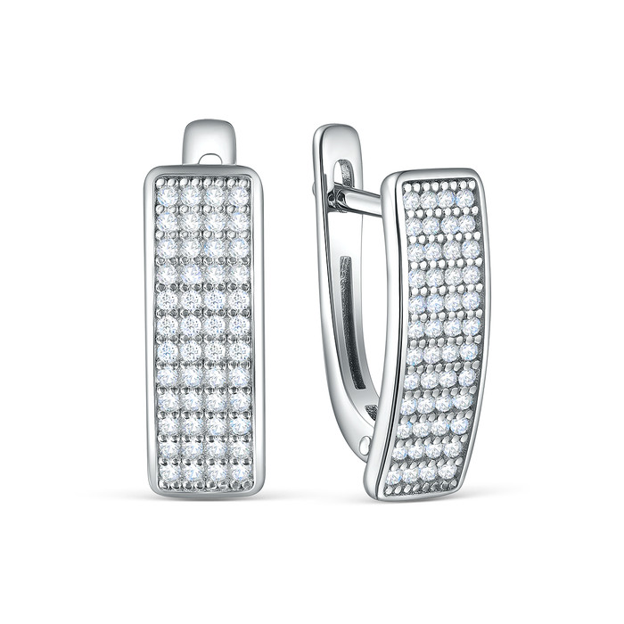 Серьги из серебра с фианитами родированные 925 пробы 2-143р200