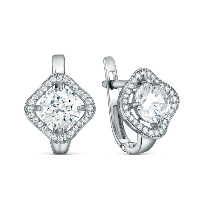 Совместные покупки Сургут Ювелирные украшения и бижутерия Серьги — Серьги из серебра с фианитами родированные 925 пробы с-4263-р