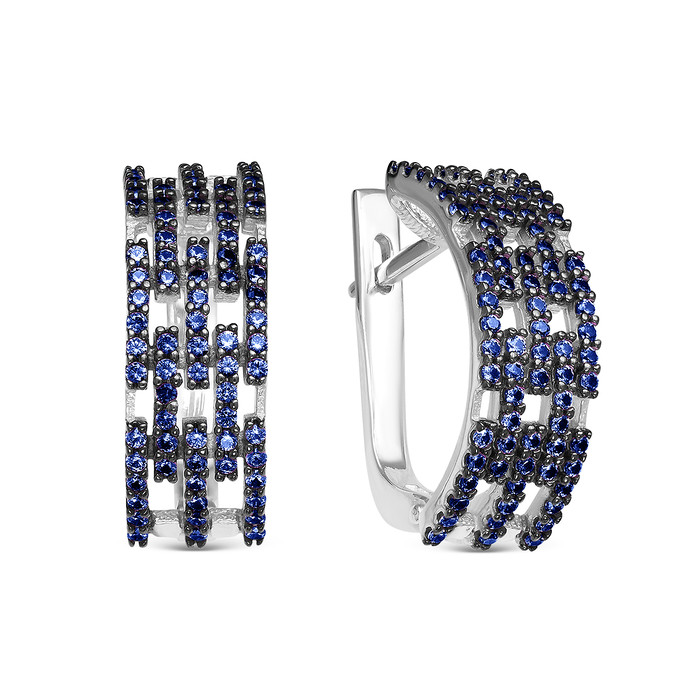 Серьги из серебра с фианитами родированные 925 пробы с-7162р108