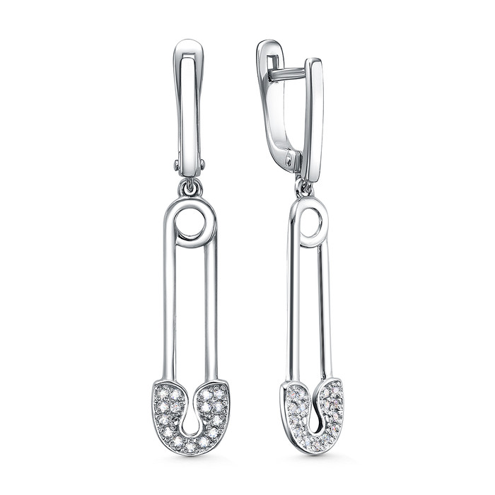 Совместные покупки Сургут Ювелирные украшения и бижутерия Серьги — Серьги из серебра с фианитами родированные - Булавки 925 пробы С-4816-Р