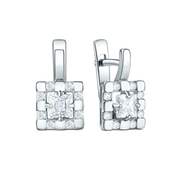 Совместные покупки Сургут Ювелирные украшения и бижутерия Серьги — Серьги из серебра с фианитами родированные Пдс-059р