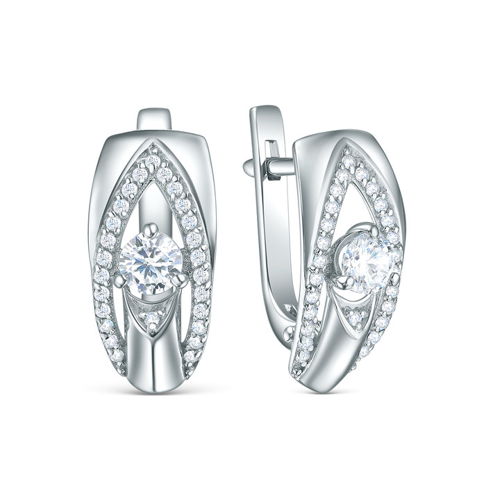 Совместные покупки Сургут Ювелирные украшения и бижутерия Серьги — Серьги из серебра с фианитами родированные С-5028-Р