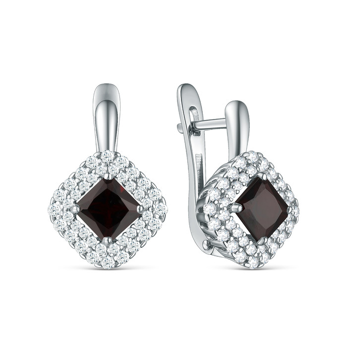 Серьги из серебра с гранатом и фианитами родированные с50083р404