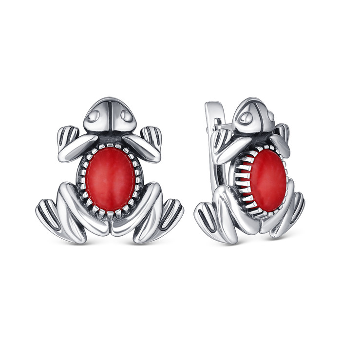 Совместные покупки Сургут Ювелирные украшения и бижутерия Серьги — Серьги из серебра с кораллом родированное - лягушки 925 пробы С-4071ок454