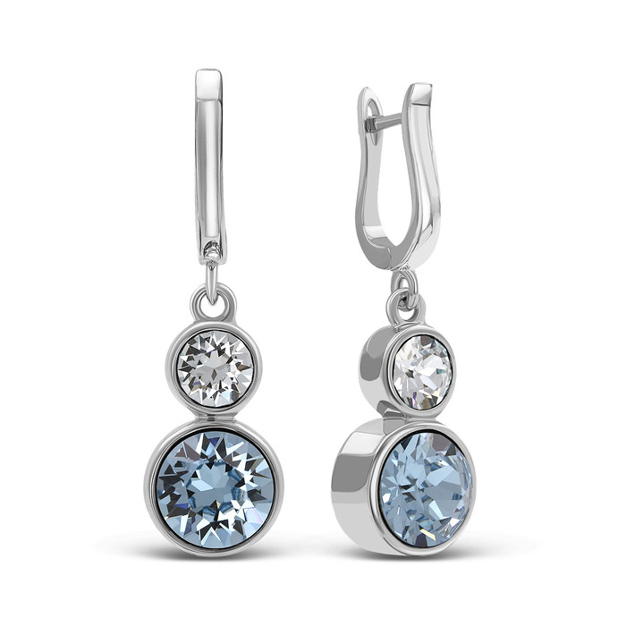 Серьги из серебра с кристаллами Swarovski Аквамарин родированные 925 пробы BHR-1