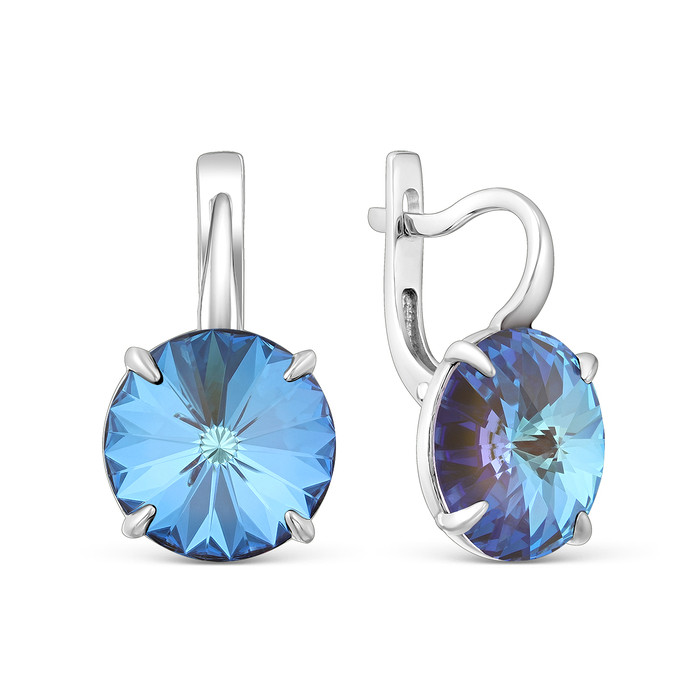Совместные покупки Сургут Ювелирные украшения и бижутерия Серьги — Серьги из серебра с кристаллом Премиум Австрия Армейский Грин родированные 925 п