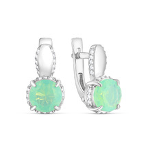 Серьги из серебра с плавленым кварцем цвета лунный мятный и фианитами родированн