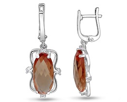 Серьги из серебра с гранатом и фианитами родированные 2-3501-001