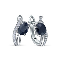 Серьги из серебра с сапфиром и кубическим цирконием родированные 925 пробы GTE-7