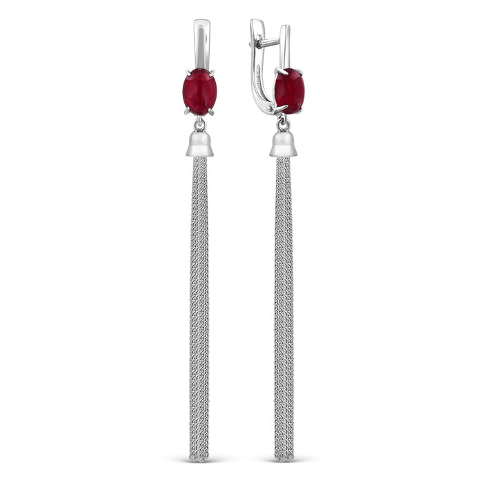 Серьги из серебра с нат.рубином родированные 925 пробы С-2301-5рк1115