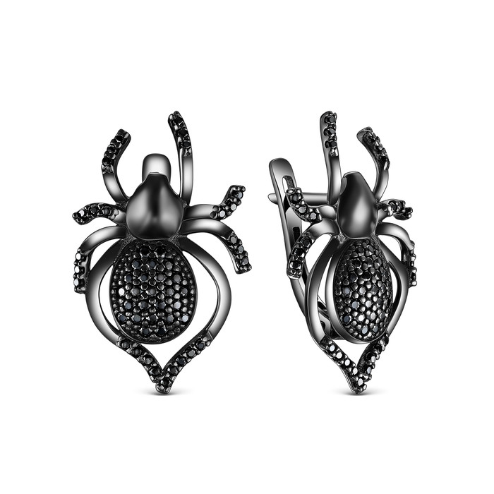 Совместные покупки Сургут Ювелирные украшения и бижутерия Серьги — Серьги из серебра с натуральной шпинелью родированные - Пауки 925 пробы С-7622рч