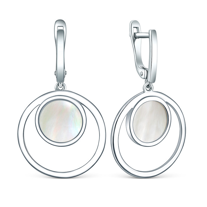 Совместные покупки Сургут Ювелирные украшения и бижутерия Серьги — Серьги из серебра с натуральным перламутром родированные - Круги 925 пробы С-453