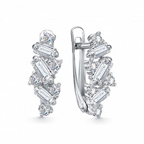 — Серьги из серебра с натуральным сапфиром и кубическим цирконием родированные - С