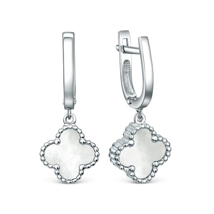 Совместные покупки Сургут Ювелирные украшения и бижутерия Серьги — Серьги из серебра с перламутром родированные - Клевер, четырёхлистник 925 пробы