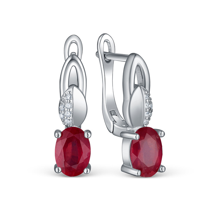 Серьги из серебра с рубином и кубическим цирконием родированные 925 пробы GTE-00
