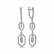 Серьги из серебра с сапфиром и кубическим цирконием родированные