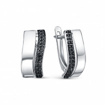 Серьги из серебра с сапфиром и кубическим цирконием родированные